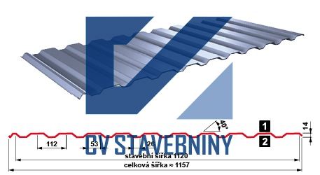 Prodejní jednotka: m2, Povrchová úprava: Aluzinek AlZn, Hmotnost: 4,6 kg/m2